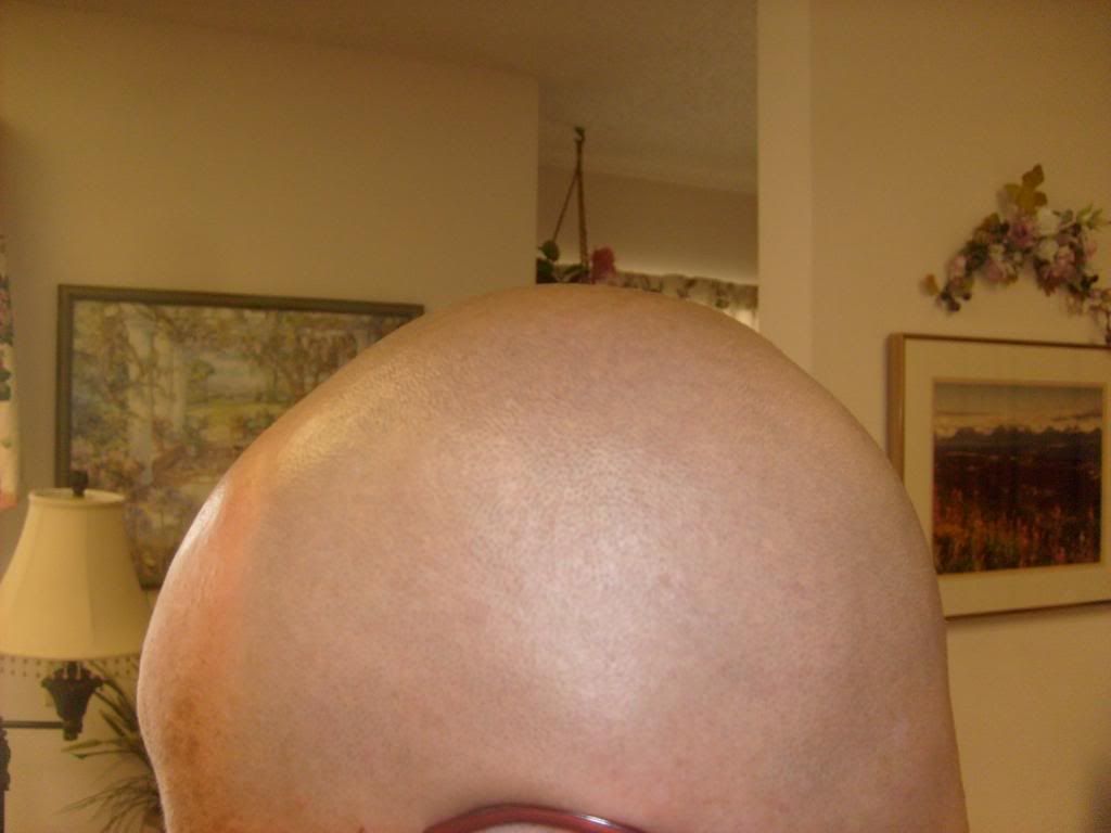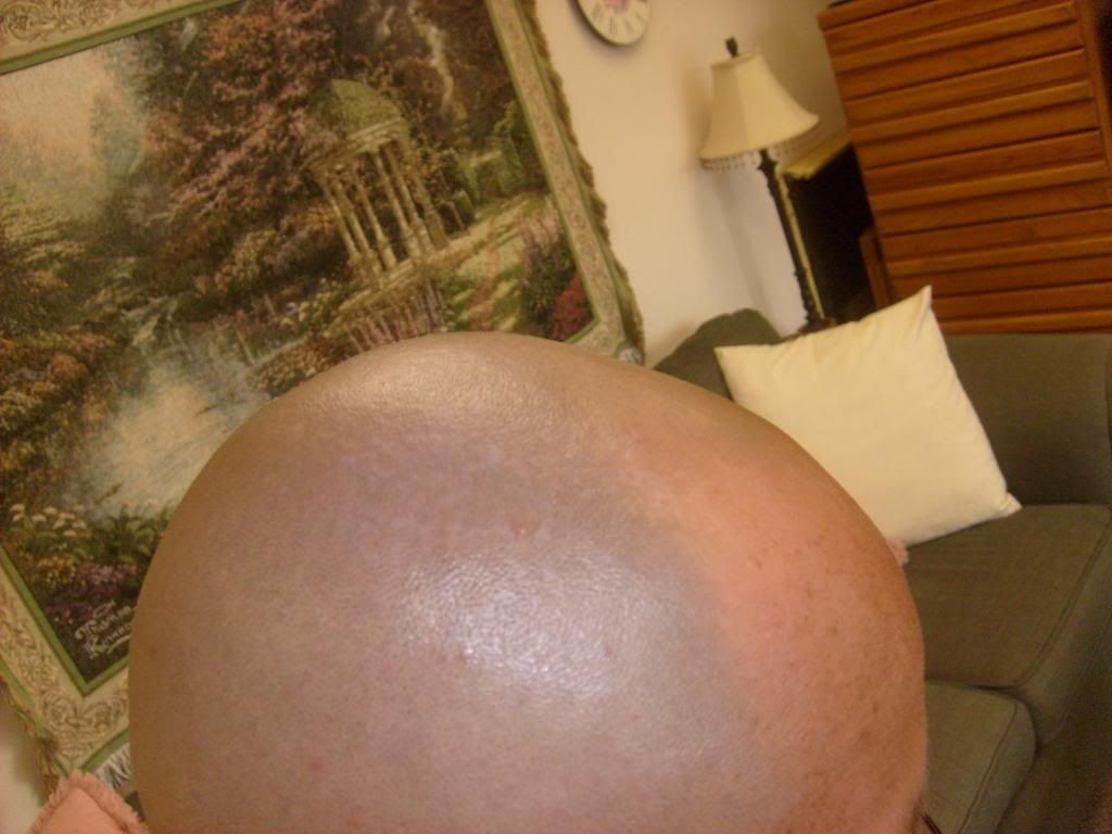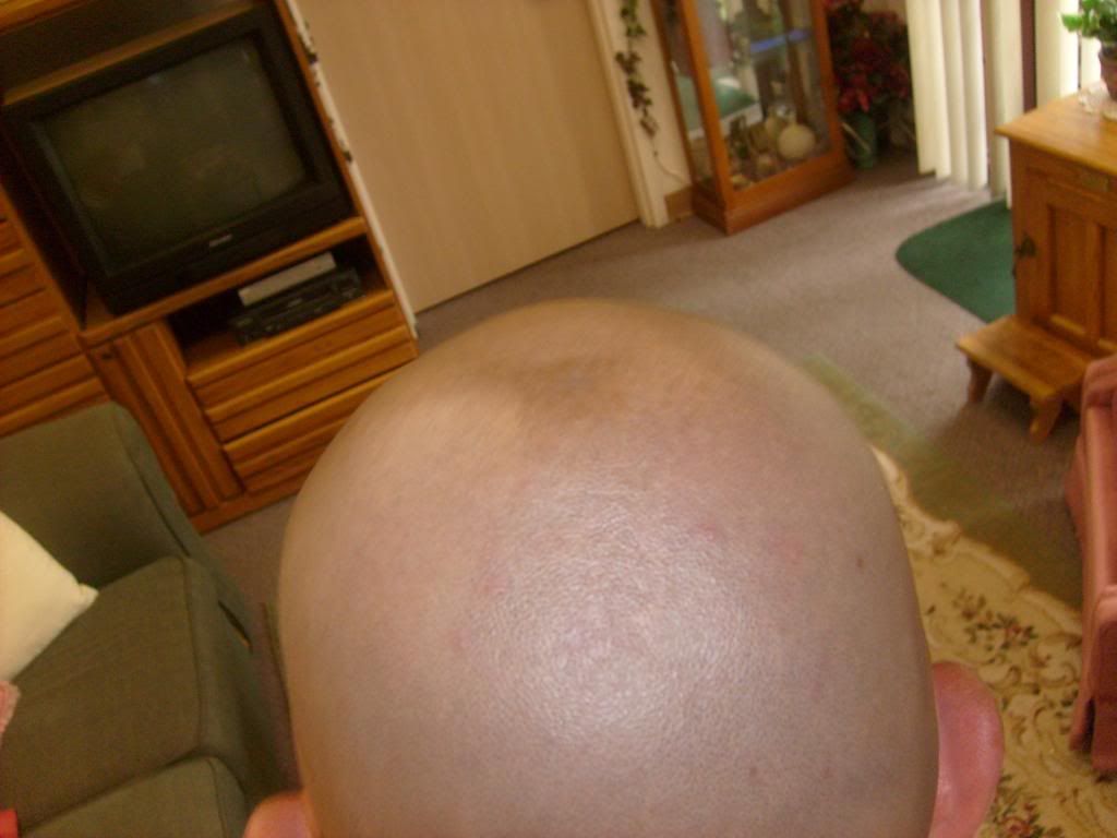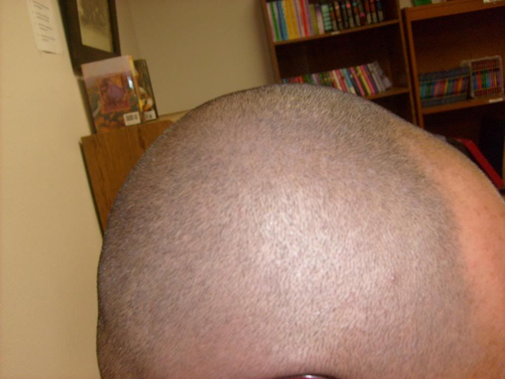 I have been letting my hair grow now for 5 days so I can see if I can tweeze it. So I though I would start this new post and give yall updates on how it is. First to give you something to compare with, here are some pictures from Monday just after I had shaved.