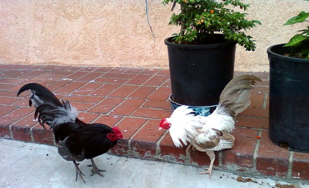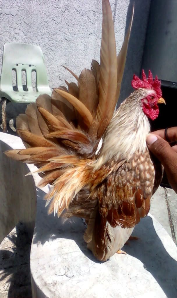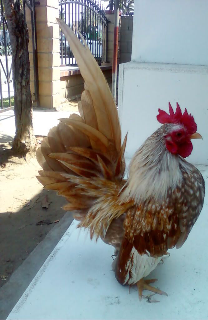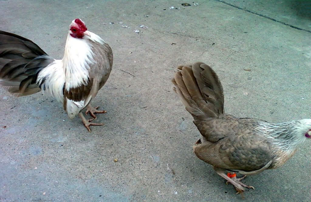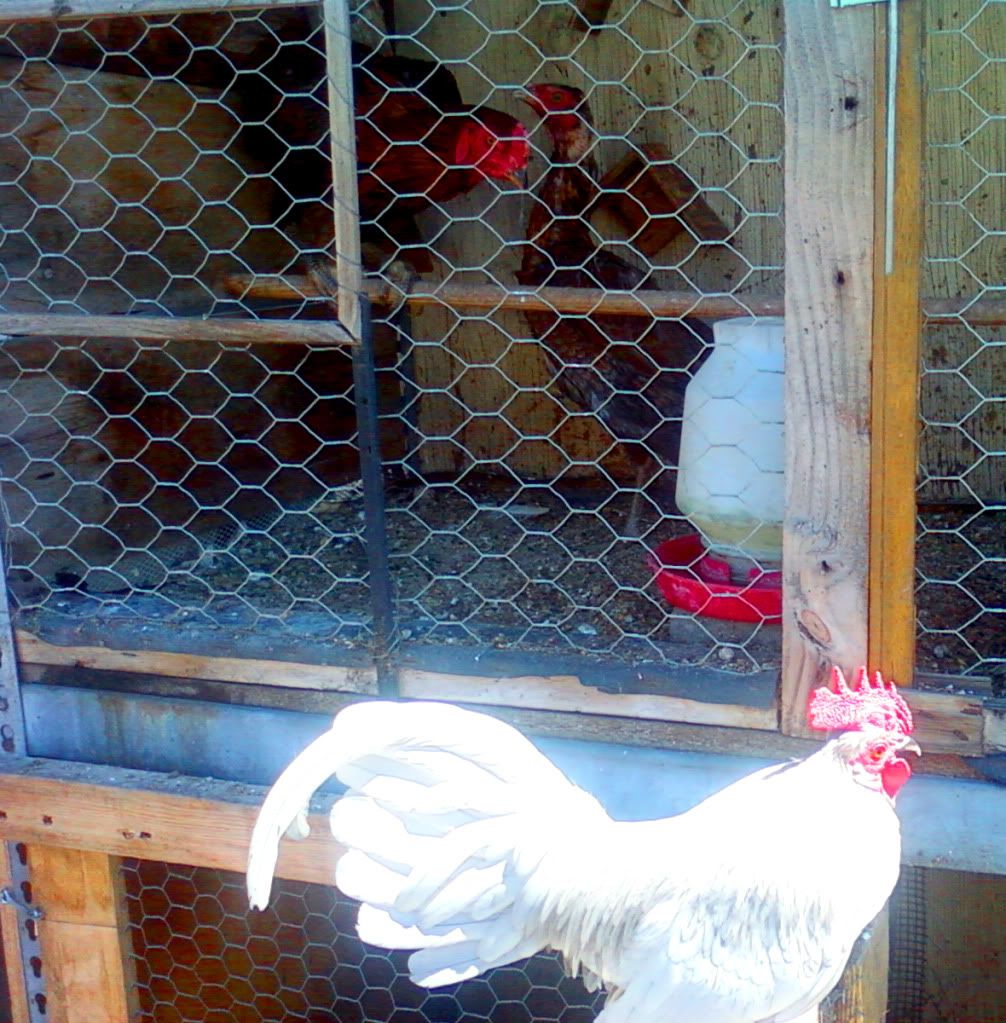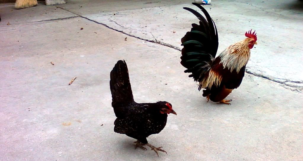 Man, those are some very pretty birds. I used to look at them every year at the county fair. When my kids were little they would enter lots of animals in the fair. My boy was about 5 yoa he had a beautiful, big Rhode Island Red he entered for 3 years and finally the dog caught him and bit most of his feathers off. All of the hens laughed at him...bald ain't sexy in the chicken community. You do have some pretty birds and I can tell you put time and care into them. Buenas suerte!