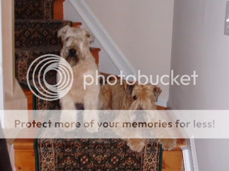 I have two Soft Coated Wheaten Terriers, Siobhan (age 11 1/2) and Rory (age 10).   This photo is about four years old.  It seems like yesterday that they were puppies; I can't believe how fast the time has gone.  It's really scary because I can't bear the thought of losing them: