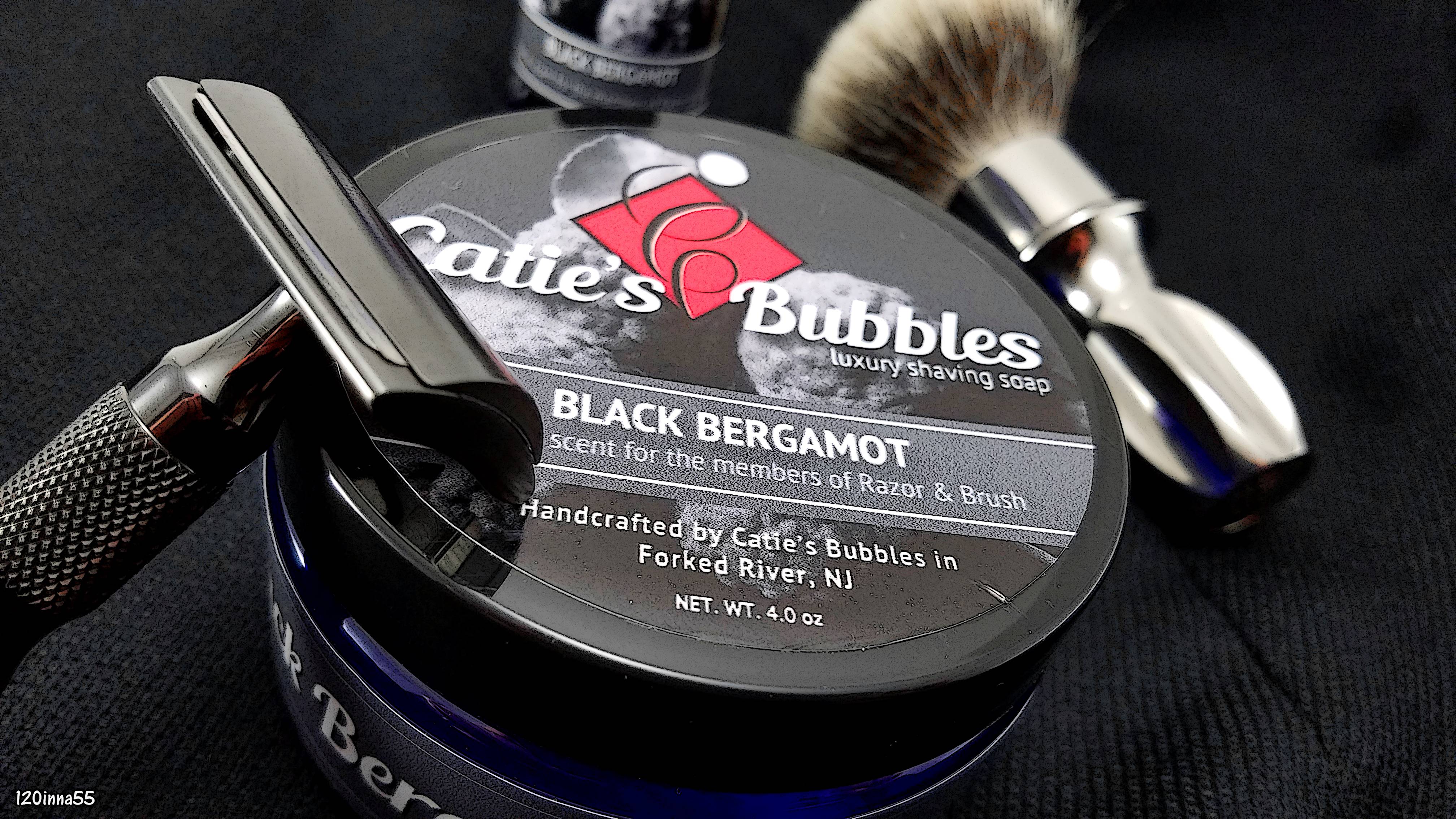 Black Bergamot is another masterpiece from Catie's Bubbles.  It's very smoky vetiver-forward with only hints of black pepper initially.  As the shave progresses, bitter citrus comes through, but make no mistake, this is a Haitian vetiver dominant soap, and I very much enjoy it.  The splash, however, lets the bergamot through much better, such that 2 hours later the bitter citrus has become the prevailing note with black pepper backing it up.