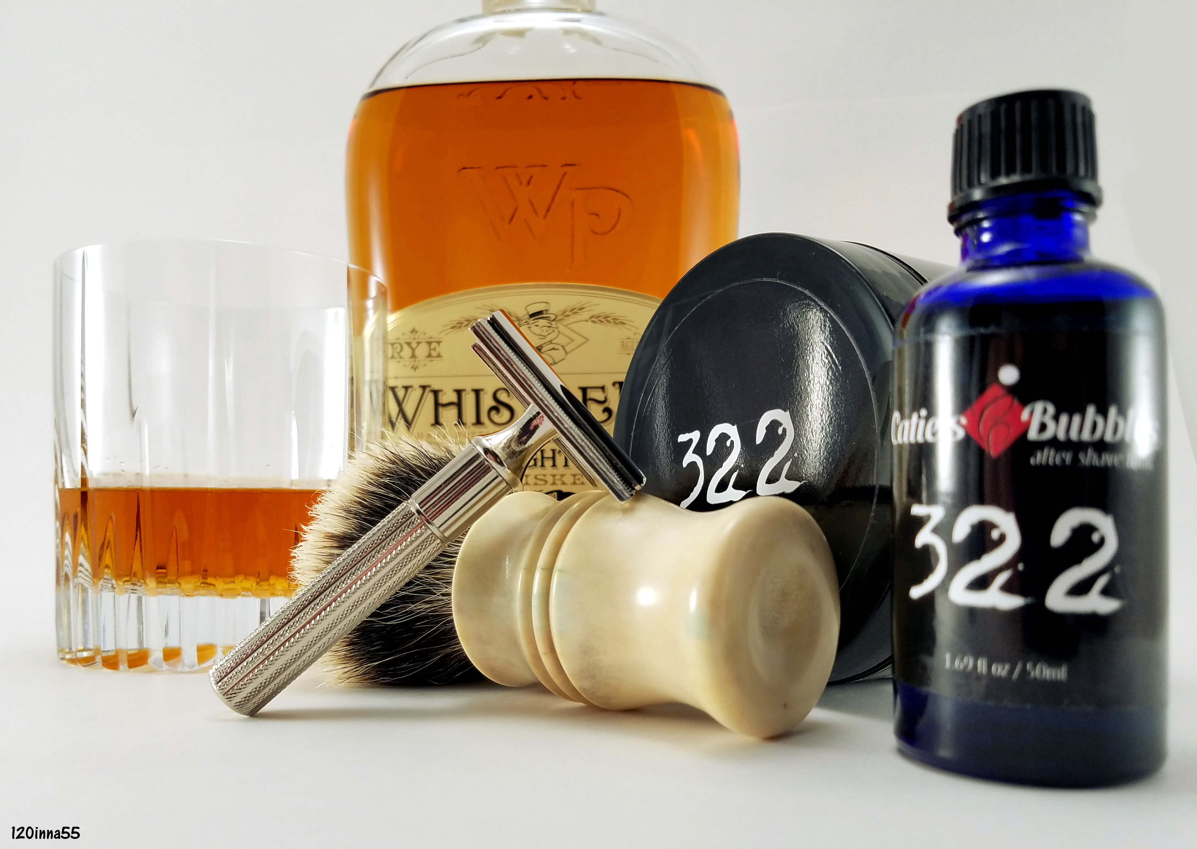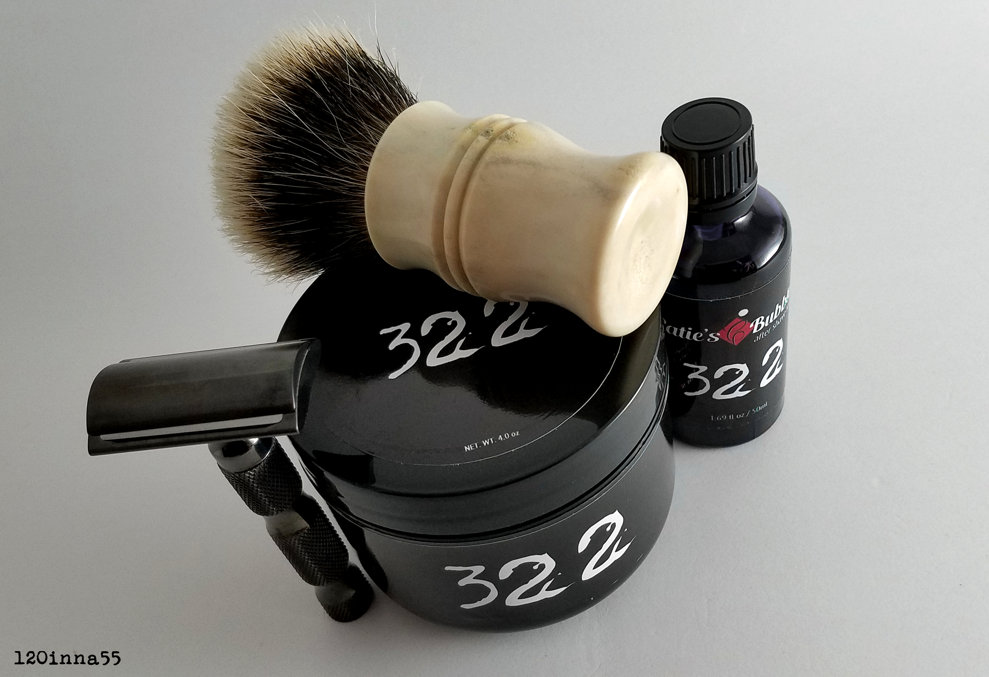 322 is my second soap from Catie's Bubbles.  I qualify as a CB newb, so I'm still taken back by the incredible post-shave feel from this soap.  Until now, Nuàvia had been my benchmark for post-shave quality.  After a few shaves under my belt (previously QCV and now 322),  I can safely say Catie's Bubbles assumes that mantle by a fair margin.  After this perfect head and face shave, I smeared the pulled lather from the knot onto my scalp while I rinsed off the gear.  This provided a natural soft feel I've not experienced with any other soap. I will henceforth make that part of my routine when using Catie's.  Still, the slickness is not as good as some of my other favorite soaps, but I'm just resigning that to the fact that I simply like tallow and/or clay.  This is not to say that CB soaps suffer in this regard.  They are still quite protective and, as previously stated, ultimately facilitate a perfect shave.