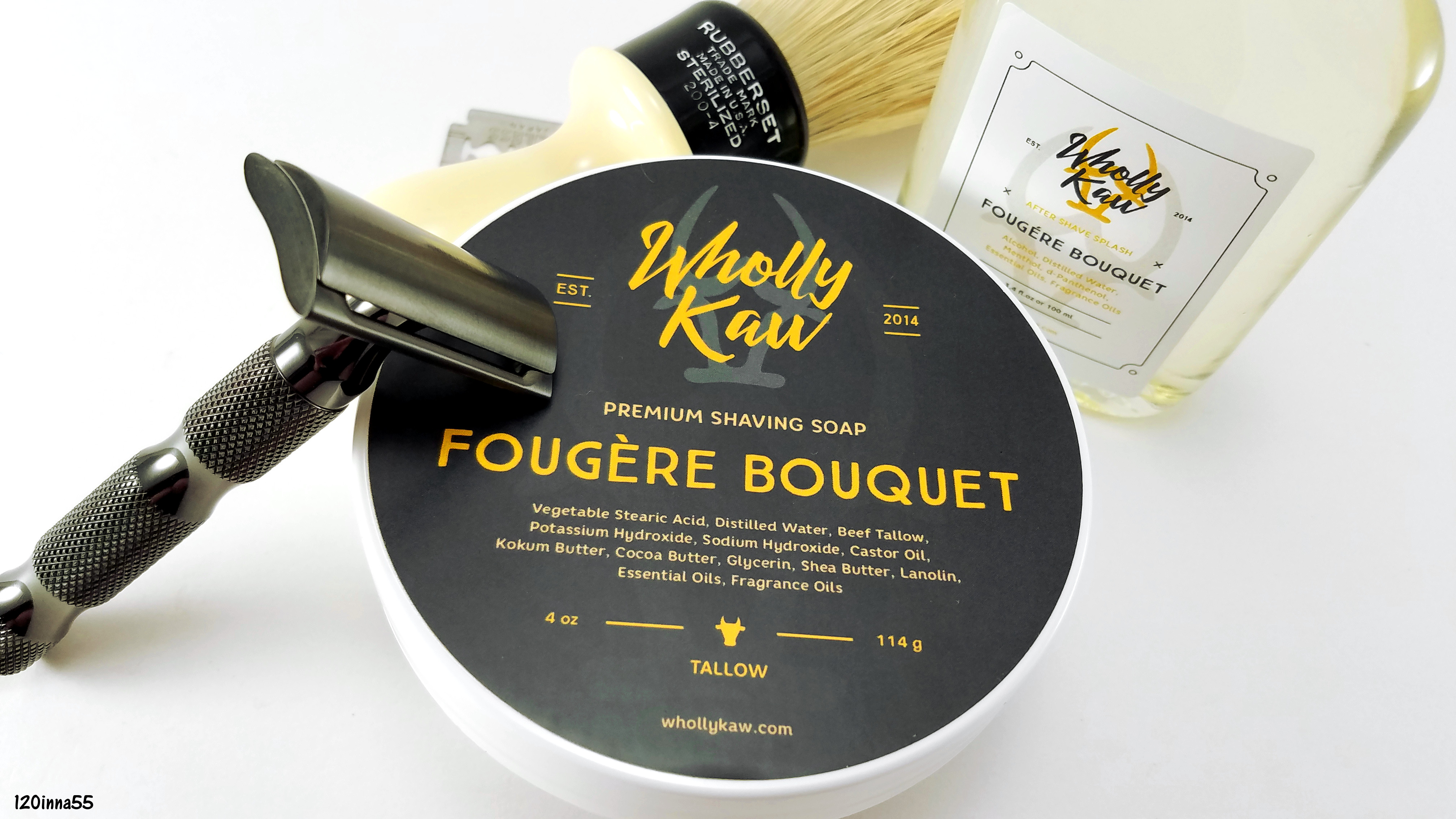 This was my first time to use Wholly Kaw's "Fougère Bouquet", and apparently, I've been missing out on this elegant, slightly sweet and spicy, fougère.  There's enough cedar and sandalwood to mitigate the sweetness, and the scent unfolds and deepens about half-way through the shave with damp green plant-like notes and finally gentle musk and oakmoss.  Fougère Bouquet accomplishes this without abandoning the initial slightly floral opening notes or resorting to damp earth.  I don't want to mislead by suggesting this is a floral fragrance, but rather one that's steadfast in maintaining its identity as a fougère yet is complex without being weighty.  It's a well-crafted men's fragrance.