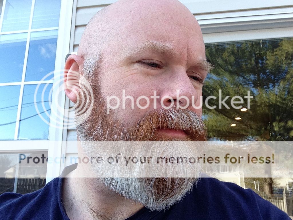 I've been gradually letting the mustache get a little fuller.  And it looks like Ive finally reached the point where my beard is mostly grey.  I've been trying to convince myself for a while that the color transition wouldn't be that big a deal but I think the change is quite dramatic.