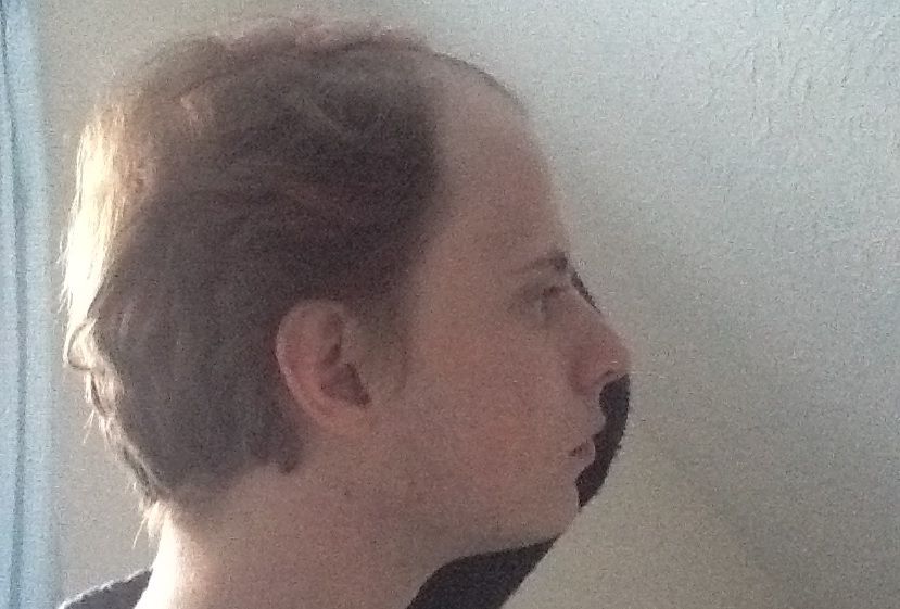 Here's a picture from the front, with me pulling my remaining hair back tight.
