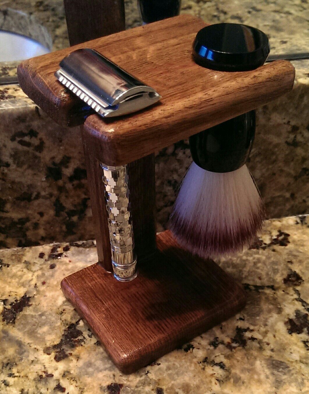 I got tired of my razor and brush just laying around on the counter top, so I made this stand out of some pallet wood I had laying around.