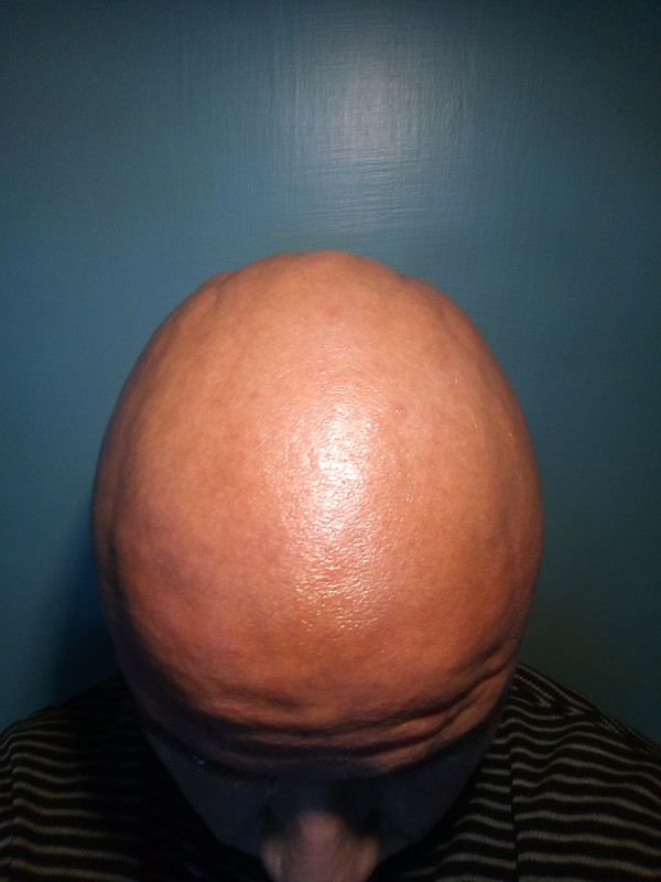 This is an older, top view picture is from when I first started shaving and had thicker hair and a full hairline. When I was truly a BBC guy!
