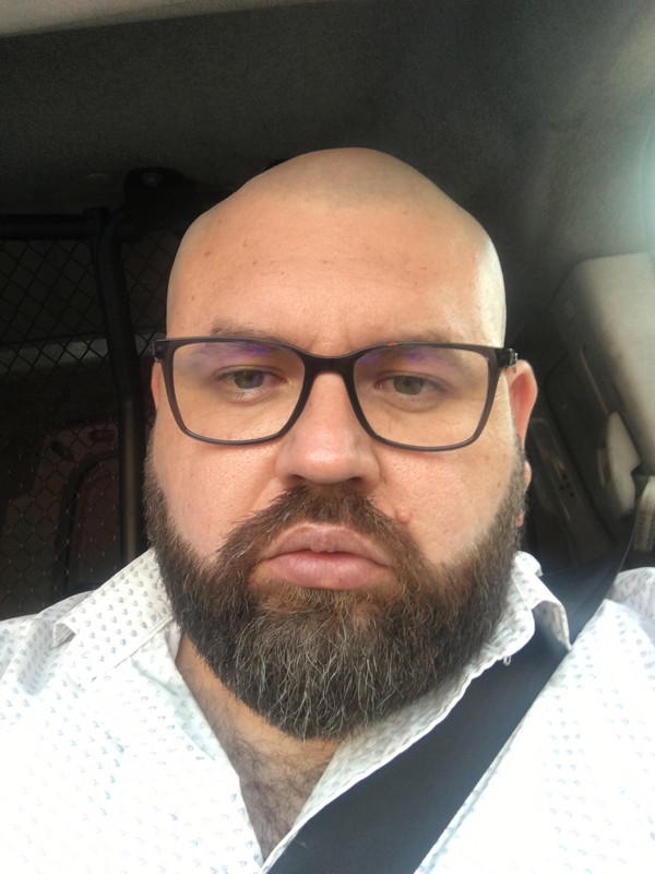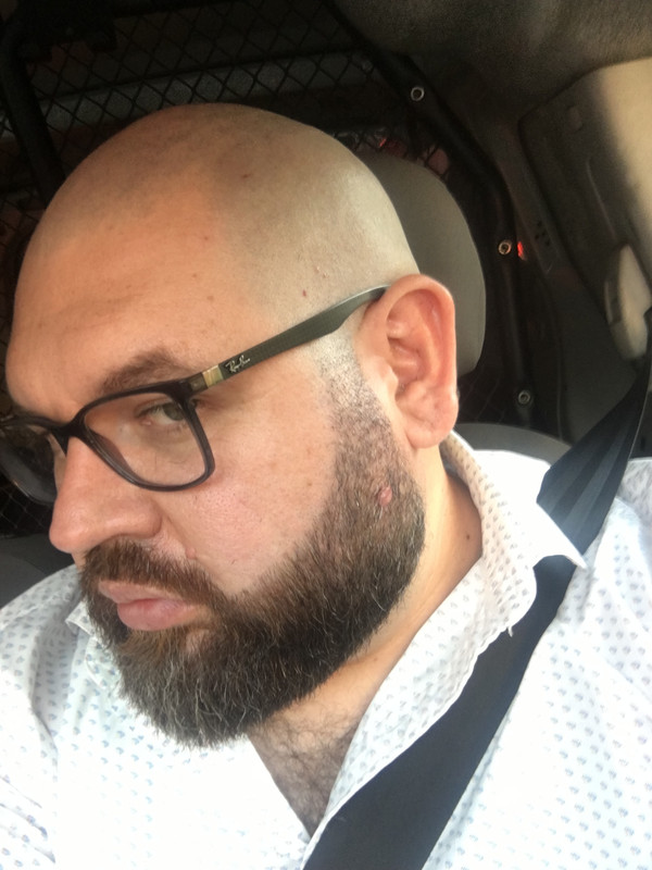 You look great in that first picture, with a bald head and with beard and with a smile!