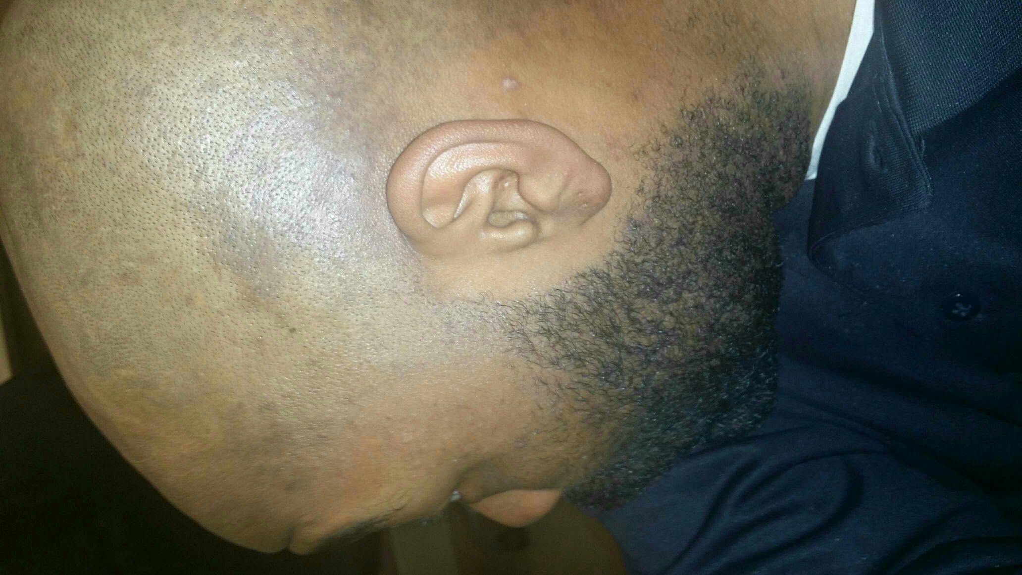 Notice the dark spot above ear. Its getting better but very noticeable for me in the mirror. Drives me crazy