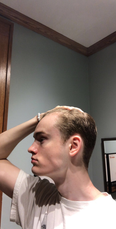 I'm quite tall (6 foot 5) and have a large head (23.5 inches) with a decent build, I just don't wanna look like an alien with no hair on my head. My forehead is not so much 'tall' rather it's pretty wide because I've had high temples since I was a little kid. I even thought I was losing my hair at 15 but here I am.