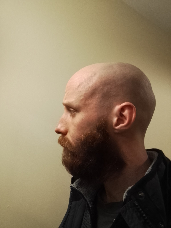 Welcome to the forum. I think you look incredible bald and with a beard. Its a nice transformation. it’s amazing how a beard can give us a different look with a fuller, squared off jawline.