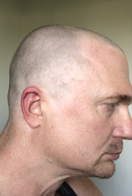Which thinking about I realise I still have adequate coverage (when the is hair longer) to appreciated the keratin a while longer. Certainly a shock seeing the lightness and pattern though at a conservative #4 clipper. So more length on top might help the situation which is the opposite of what I initially thought