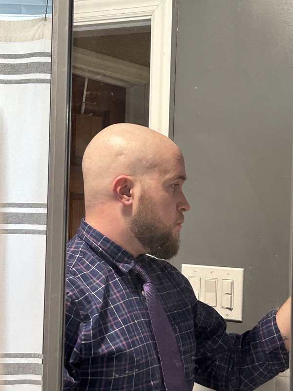 I shave every other day, typically with a cartridge razor and a foil shaver. I have a decent amount left on top but I'm curious to see how far you guys think I am from being fully bald on top naturally (the top-down photo with the stubble is a recent pic of me 2 days post shave). I have what I think is diffuse thinning but others around me have said they don't notice it. I'm honestly looking forward to when it goes since it's a lot of upkeep and don't know if there's anything I can do to help speed up the process, haha. But any advice you have on how to make the style work/decrease the hair shadow would be much appreciated. I'm also in the process of growing the beard long.