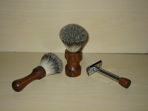 well i received my badger brush and shaving creams from that article i posted. i have to say there is a whole lot of difference using quality products compared to the rather inexpensive boars brush and mug shaving cream i bought at walmart. the badger brush was softer and lathered up twice as much as the cheap boars brush. the shaving cream also left a good thick shaving cream and really helped moisten my skin.it also smelled good and left my face feeling soft and smooth not to mention it seemed to make the DE shaving get closer i feel by more lather and also held more water. I'm really enjoying this double edge shaving not to mention it is a whole lot cheaper to shave once you have made your initial investment of quality product. which really isn't that bad and will repay itself in a year50.00 for DE adjustable shaver40.00 for a quality badger brush12.00 for Taylor of bond shave cream 1.50 for 10 personna double edge blades at walmart---------------------------------103.5 initial investmentmaybe add 20 bucks for shipping and handling.