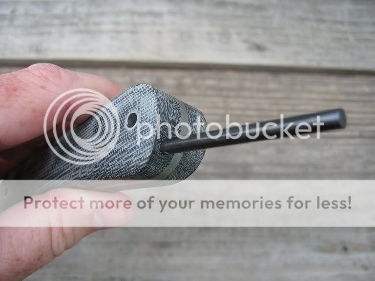 I also had John drill a 3/16 x 2.5” hole in the handle (think Swiss Army Knife toothpick) for a fire steel to be slipped in.