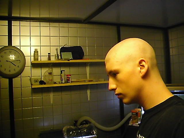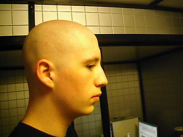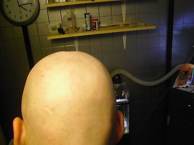 Now I look at myself and see that my head is flat, and my ears stick out too much for the bald look. And the funny thing is, I don't care! I feel above criticizing. I feel confident and don't worry about it. Screw all the superficial stuff. This is me, in my purest form. I don't worry about how it looks, because it feels good, and it makes me feel free. (and I like touching my scalp  O:O ???)