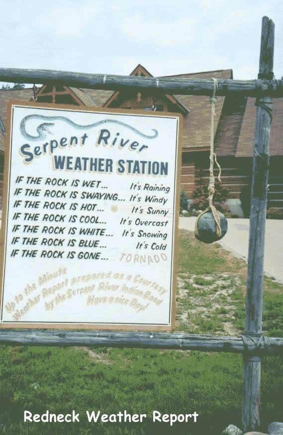 around here if they say 20% chance of rain....really they mean 100%. If they say 80% chance of Rain...what they mean is a slight chance. Never really listen to the weather...because like everyone else...I can look out side...lick my finger, hold it up in the air and tell you better then they can.