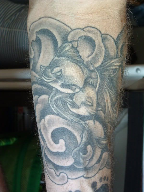 Here is another of my tattoos this one is started off with just the two fish then had the water added around them at the Seattle Tattoo convention a year or two ago.