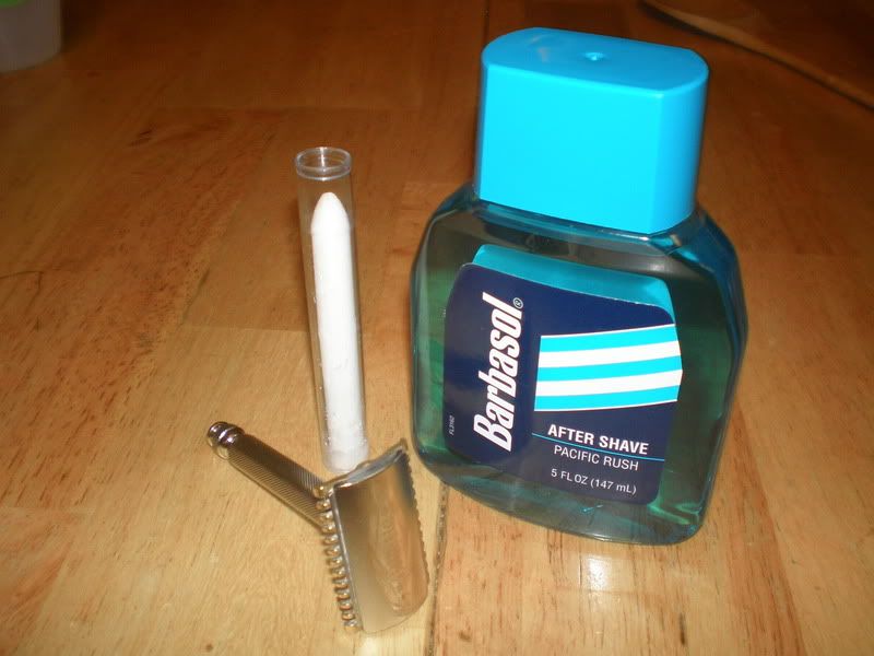 When I DO shave my head with a DE, I use a Gillette tech and Wal-mart DE blades. I use Merkur Super Platinum blades on my face with a Gelette SuperSpeed Blue Tip