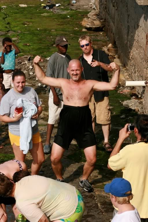 OK OK I guess I at least if nothing else owe you all an explaination. Actually it is quit simple. Those shorts are those thin stretchy ( sorta like the underarmour material) We all had went down to the ocean, not knowing I was going to be getting in. I ended up getting in for a few minutes but got out a few minutes later because I got stung by a jelly fish. My upper legs were on fire. They hurt really bad. Anyways I couldnt stand for the material to brush across my upper leg so I was standing there and being that the shorts were really stretchy...and you can see by the pic, I probably could have pulled them up over my head. Anyways...so the story goes...there I was caught by camera so then I decided to do a pose.So there you have it.