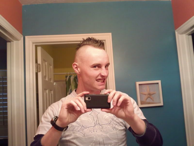 alright--so the girlfriend saw my mo-hawk tonight.  She wasn't SUPER pleased with it--but she didn't dump me so that's a plus.  I have had the hawk for about  9 hours now, and I couldn't be happier with it.  Also--I can't stop rubbing my head ha ha.  I have ZERO regrets about shaving my hair off and I look forward to becoming SLY soon--although I'll have to warm the girlfriend up to the idea first...