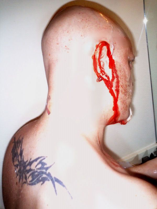 i just cut my head BADLY using a new blade on my headblade. im freakin out here lol. its like oozing blood. theres already 4 drips on the floor. right now i have 2 folded paper towels on my head, with headslick still on my head lol. the cut was so nasty my skin was actually stuck in the blades of my headblade.